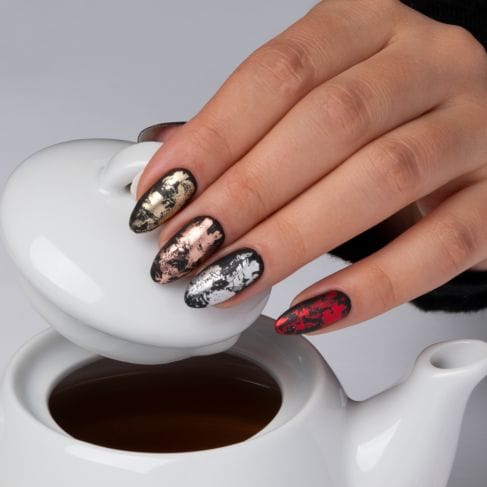 C’est un moyen de faire une manucure rapide, facile et efficace avec un bel effet métallisé.